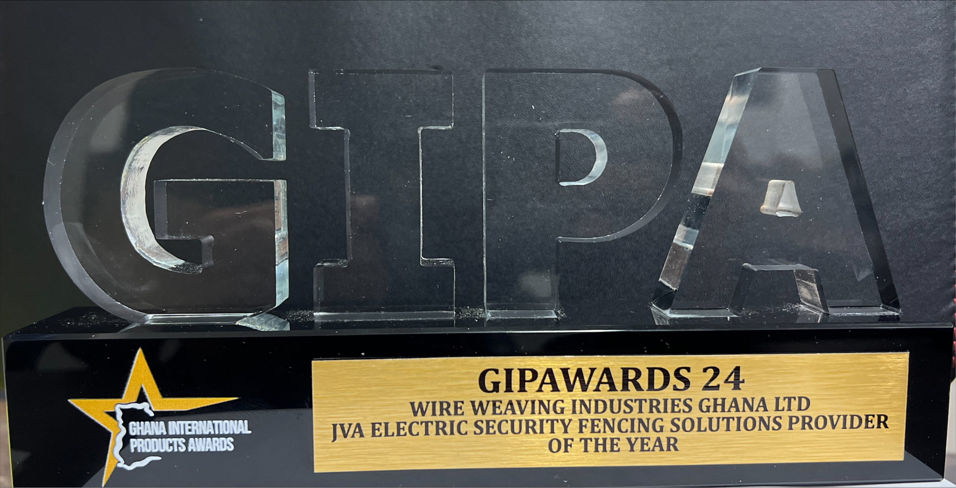 The “Electric Security Fencing Solution Provider of the Year” award has been conferred on Wire Weaving Industries by KN Unique Communications, event organisers of the 2024 Ghana International Products Awards. This award brings into recognition that JVA Electric Security Fencing in Ghana is the trusted and reliable superior quality security product.